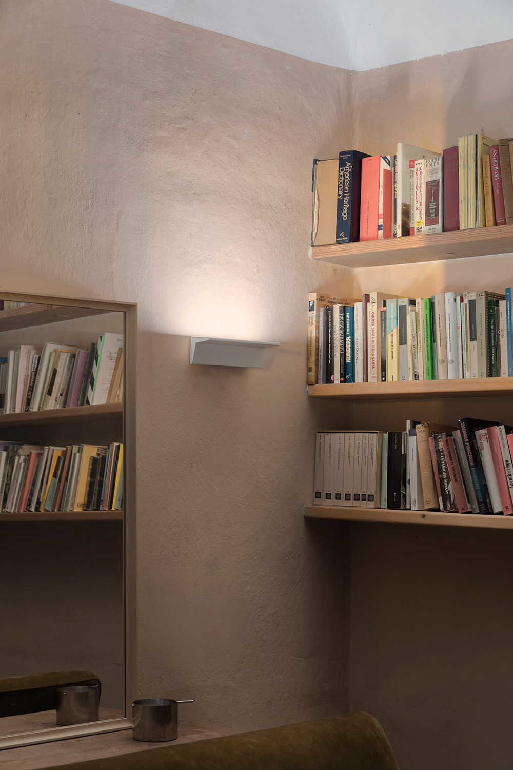 Настольная лампа 57t — результат экспериментов Омера Арбеля с технологиями производства и свойствами материалов. Основание отливают из цельного куска латуни и полируют вручную до гладкости, сохраняя естественную тяжесть и устойчивость металла. Этот массивный элемент контрастирует с визуально легким плафоном из выдувного опалового стекла, доступным в сером или белом оттенках. Стекло мягко рассеивает свет, создавая равномерное атмосферное свечение без резких бликов.